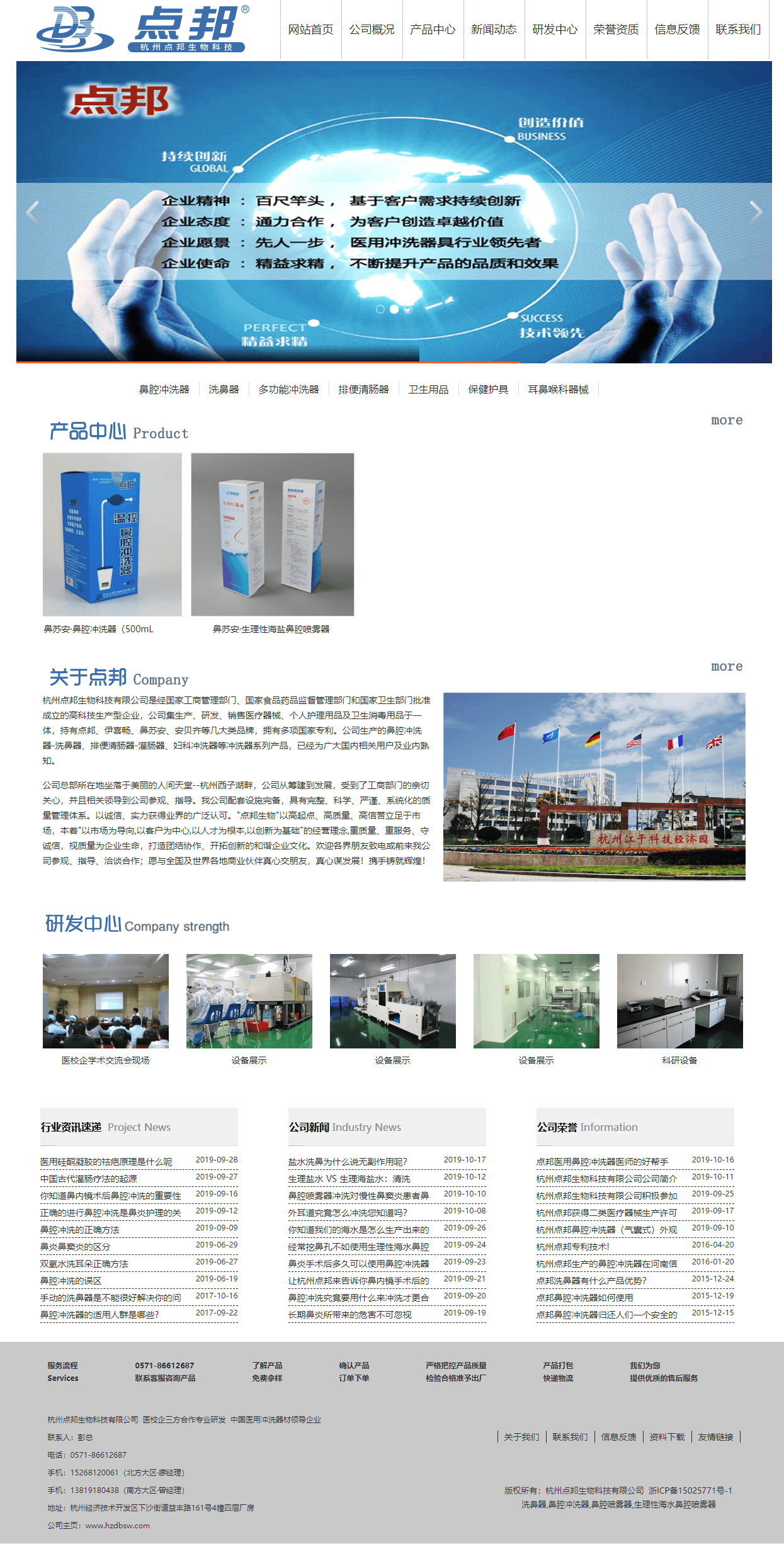 杭州點邦生物科技有限公司是經國家工商管理部門、國家食品藥品監督管理部門和國家衛生部門批準成立的高科技生產型企業,公司集生產、研發、銷售醫療器械、個人護理用品及衛生消毒用品于一體,持有點邦、伊喜暢、鼻蘇安、安貝齊等幾大類品牌,擁有多項國家專利。公司生產的鼻腔沖洗器-洗鼻器、排便清腸器-灌腸器、婦科沖洗器等沖洗器系列產品,已經為廣大國內相關用戶及業內熟知。